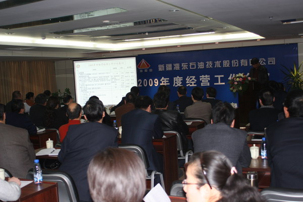 2月21日上午,在烏市盈科國際中心26樓會議室,公司總經(jīng)理常文玖主持召開了準油股份2009年經(jīng)營工作會議。公司副總經(jīng)理王金云、王玉新、陶煒、沙克洪、財務(wù)總監(jiān)孫新春、總工程師簡偉和監(jiān)事會主席、工會主席周維軍等領(lǐng)導參加,公司所屬各單位和子公司經(jīng)理、副經(jīng)理及兩級機關(guān)部門負責人到場參加會議。