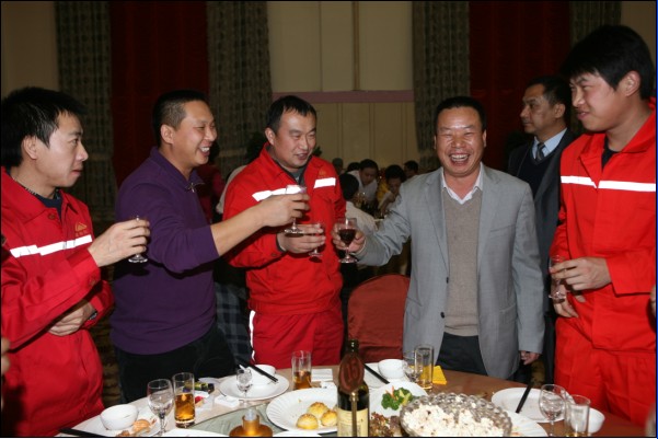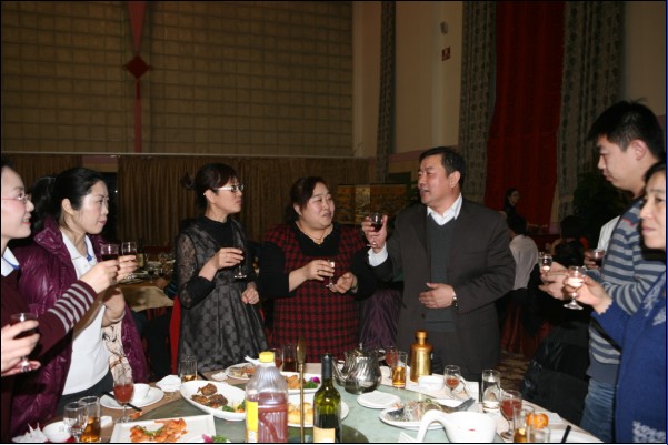 有句古話叫“無(wú)酒不成席”,今天更是如此。平時(shí)要上班,要開(kāi)車,酒是不能喝的,今天有了開(kāi)懷痛飲的機(jī)會(huì),又逢如此高興的日子,那興奮勁兒就不必說(shuō)了。秦總、常總、王總一桌一桌的敬酒,各種感謝和祝福的話語(yǔ)表達(dá)了領(lǐng)導(dǎo)的深切關(guān)懷,走一桌就坐下來(lái)聊一會(huì)兒,聊這一年的付出,聊這一年的困難,聊這一年的收獲。公司其他領(lǐng)導(dǎo)也一一到各桌和員工們喝酒,帶去問(wèn)候和祝福。員工們的互敬當(dāng)然更熱鬧,整個(gè)大廳觥籌交錯(cuò),歡呼聲不絕于耳。